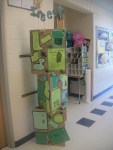 A few years ago I came up with this idea with the help of the art teacher at my school. Each classroom decides on a theme and then the students create poetry about the theme. Poems are typed (or handwritten), and then placed onto these towers. The towers are three sheets of cardboard (60 in x 20 in). We spray paint them and then fold and tape or staple them together. Notch them and then just slide them onto one another. These make an adorable display for April (it is poetry month, I think). To go hand in hand with the project, we compile all of the student poems into a school-wide anthology and give a copy of the anthology to each child! They LOVE it! They read those anthologies cover to cover!