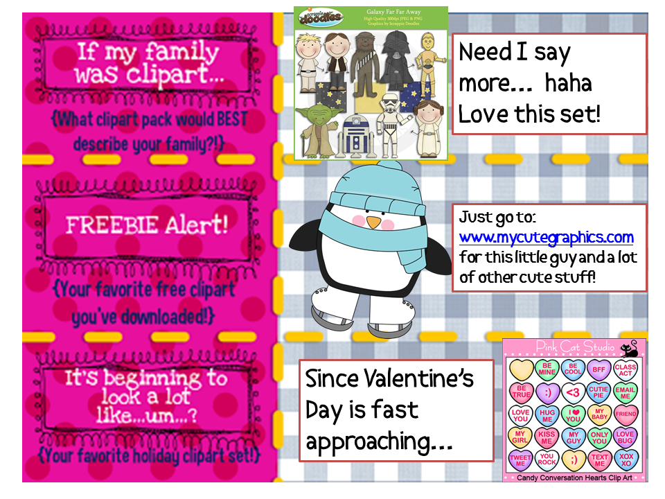 The Science Penguin also picked the Star Wars set!! (Not for her family though…) Tee hee! I LOVE your zombie gingerbread shout out! I never saw that before. Awesome!! I had no idea that Tracee Orman had clip art too! So fun reading your faves!