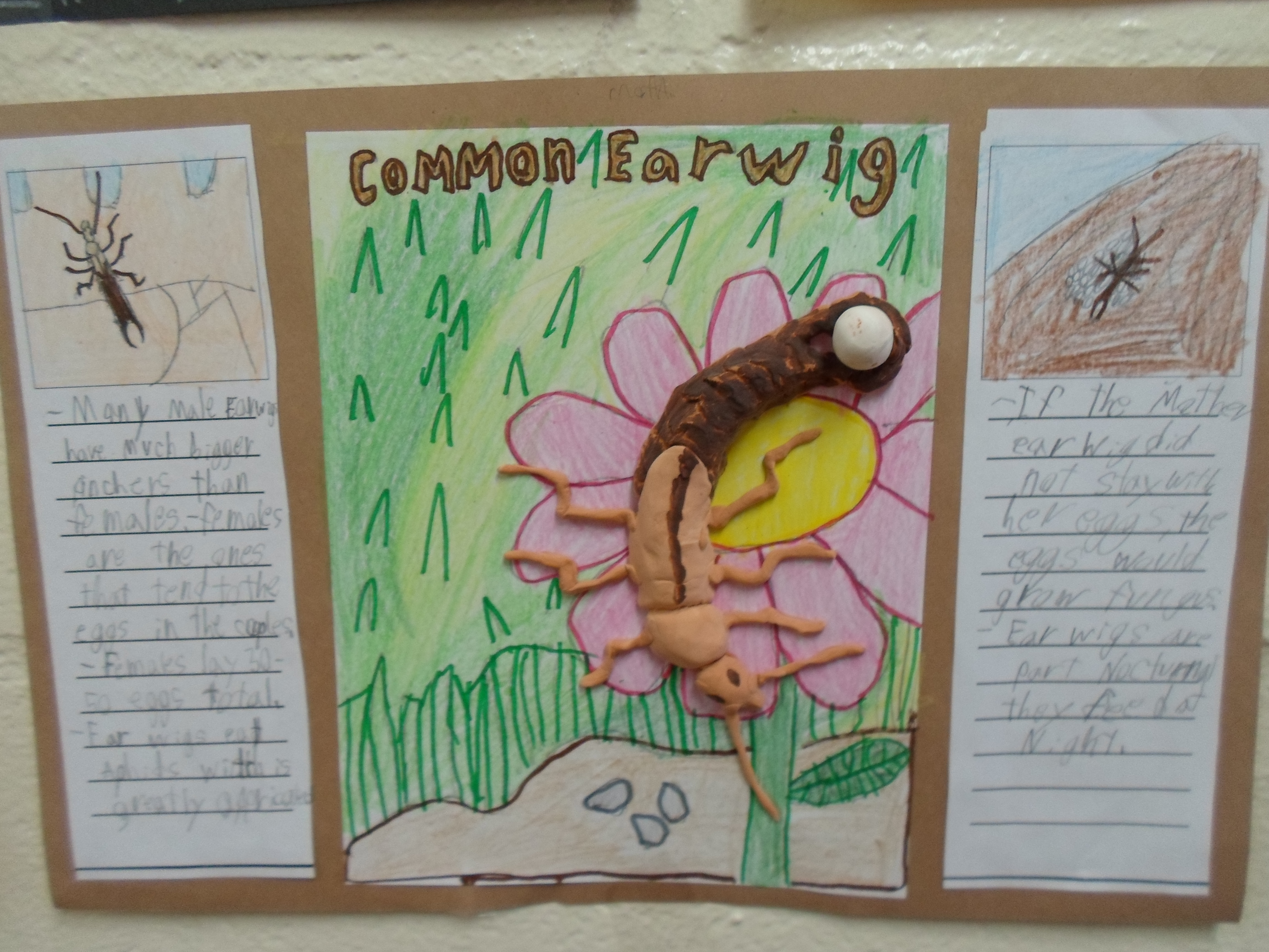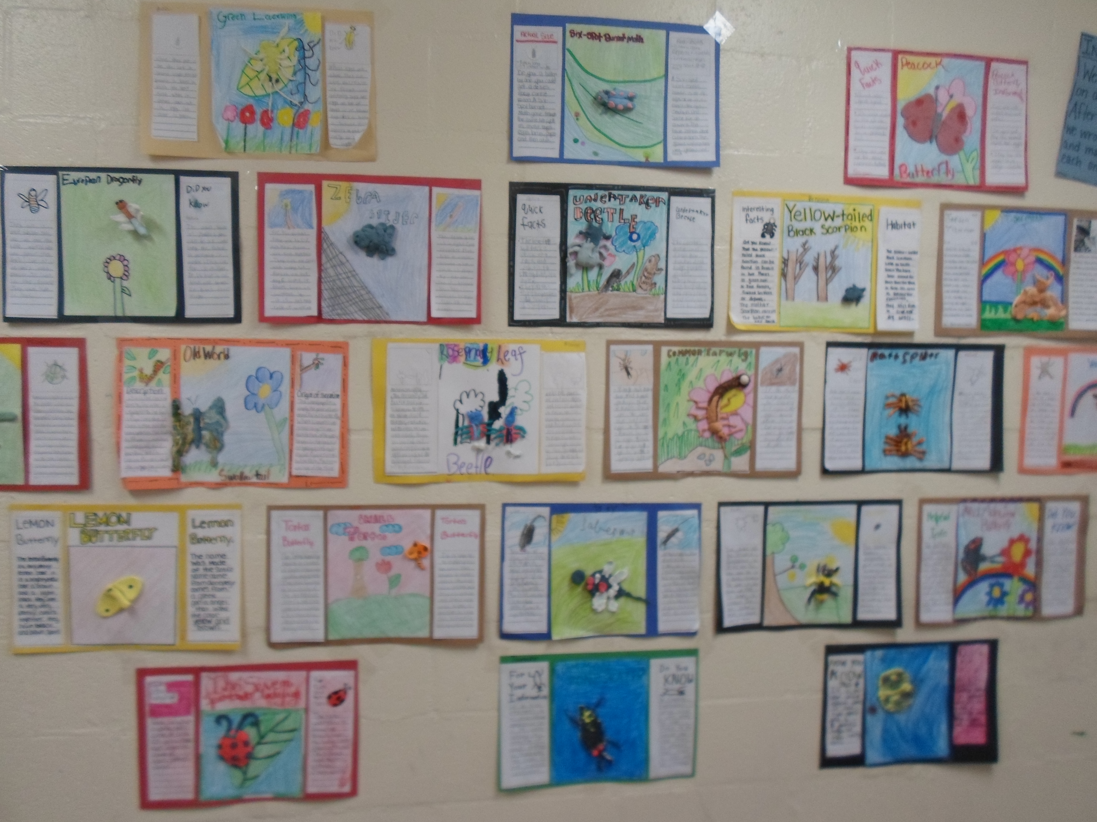 You can easily recreate this yourself with a couple of sheets of white copy paper, Crayola model magic (one of my favorite things), a sheet of 12 x 18 construction paper and some books and/or websites about insects!