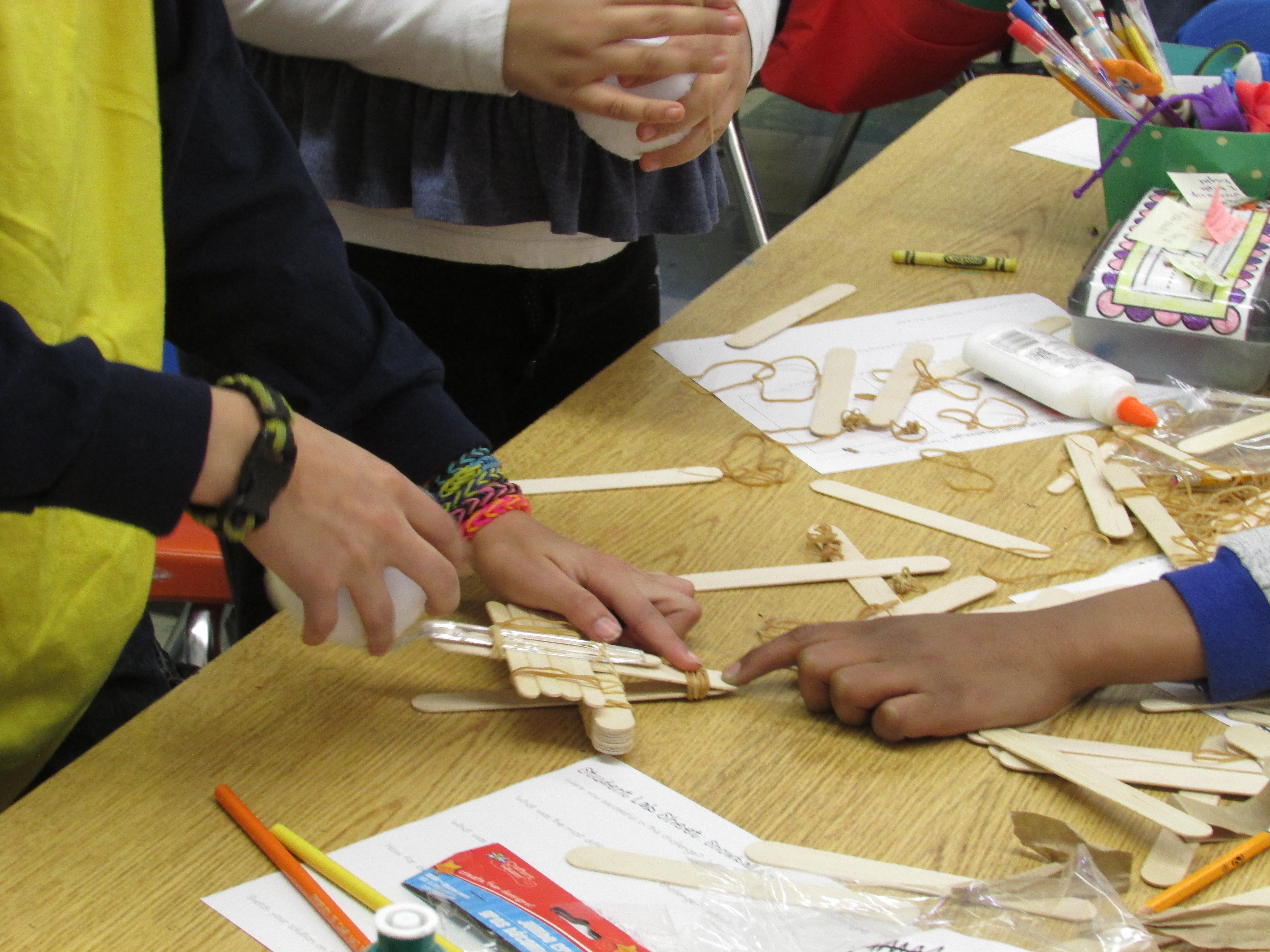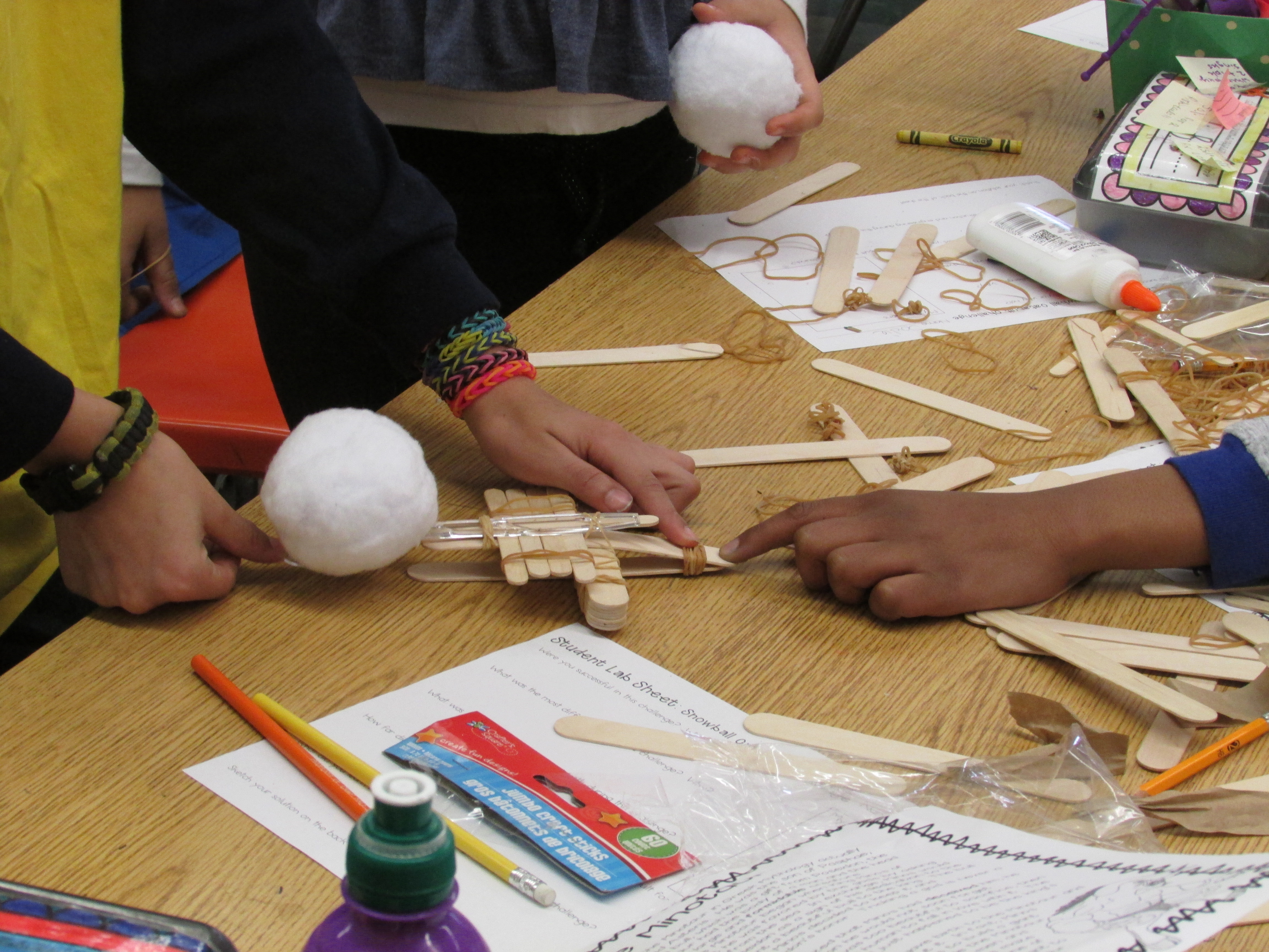 We spent some time designing and engineering Snowball Catapults. What else can we do when winter seems to be never-ending? The kids came up with some great ideas and they were able to launch their “snowballs” quite a distance! Check out some of their design ideas…