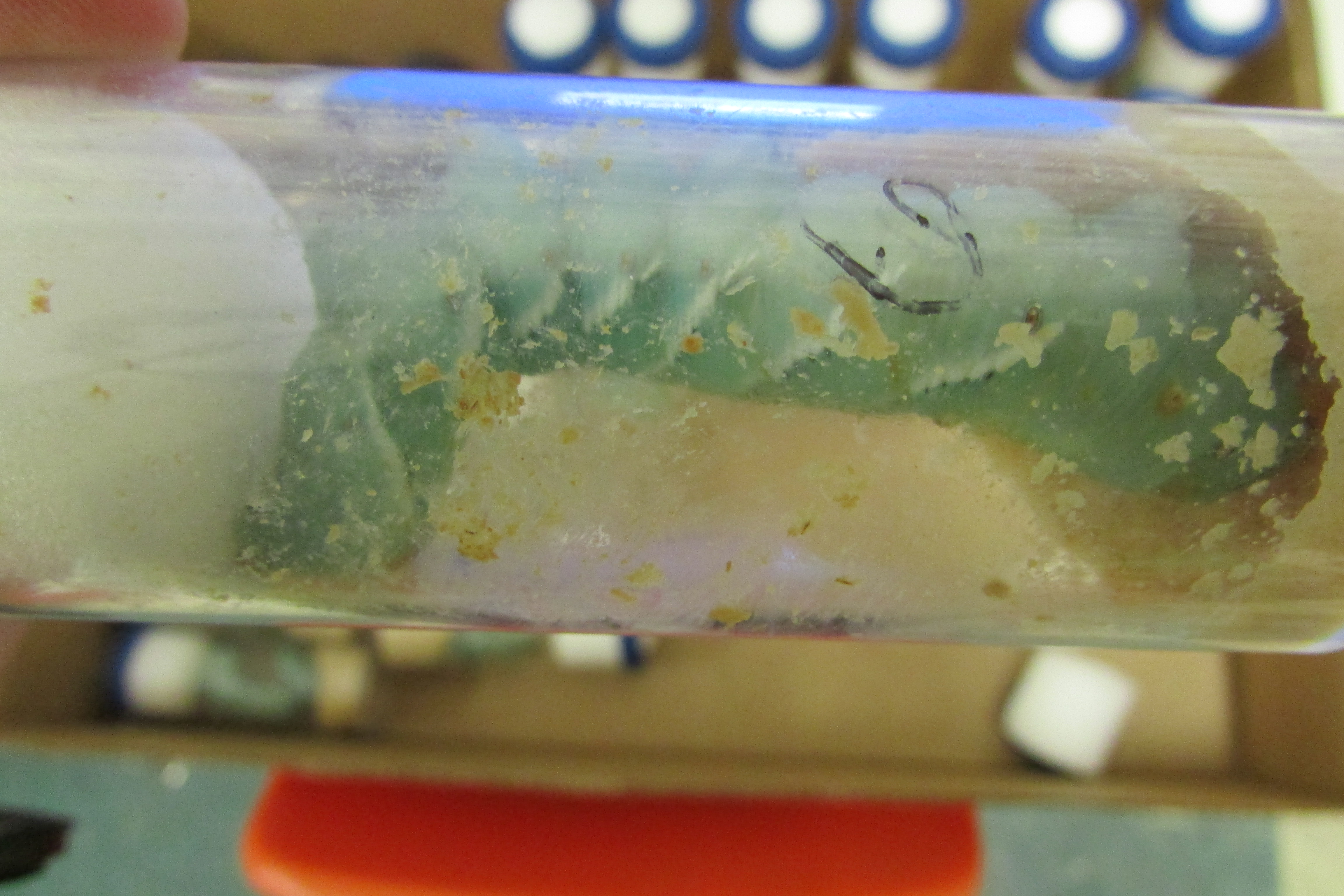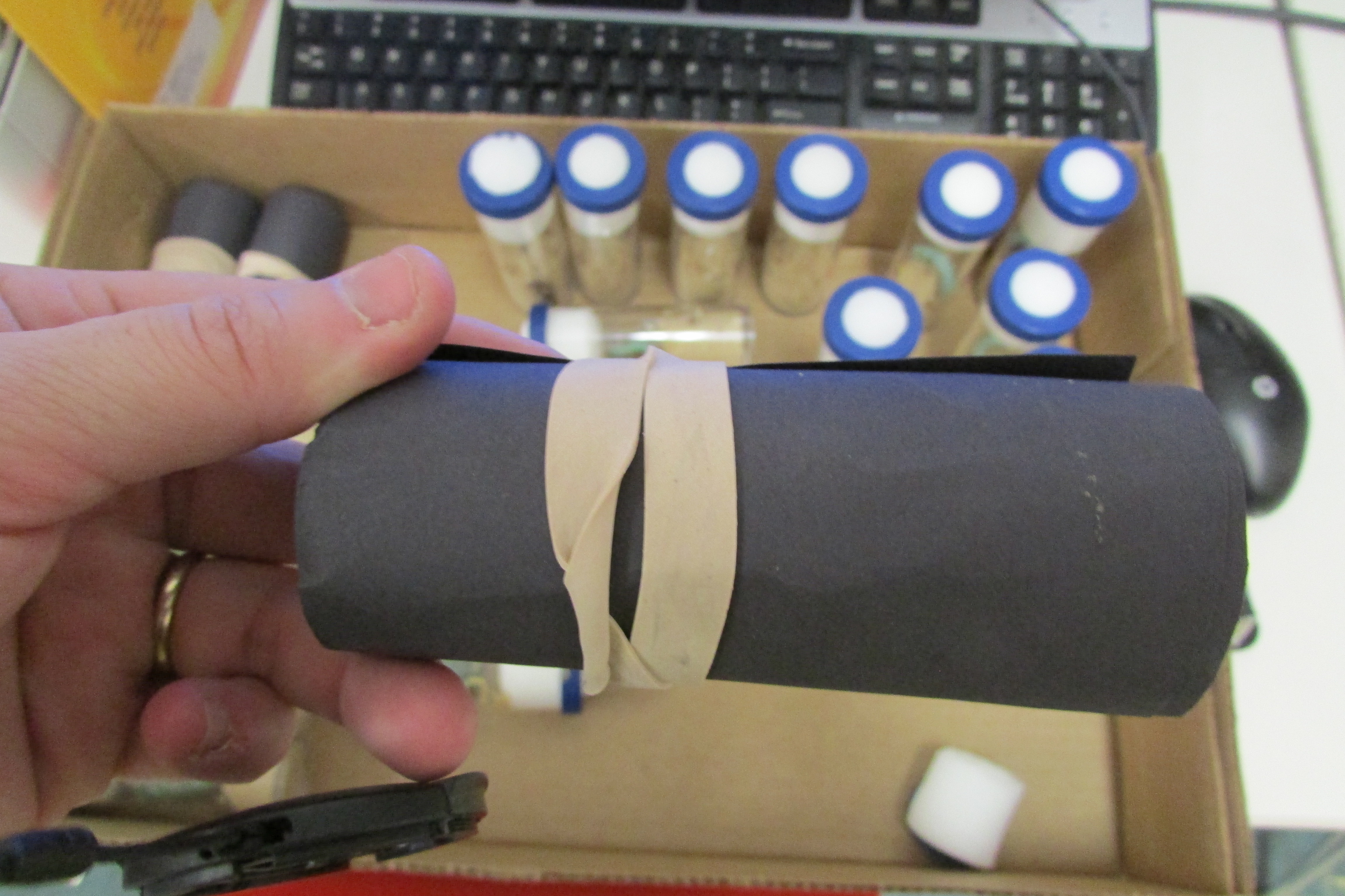Once they get large enough, it is time to prepare the chamber for the caterpillar to pupate. These guys usually pupate underground, so we had to fill the container halfway full with wood shavings and cover it with dark paper.