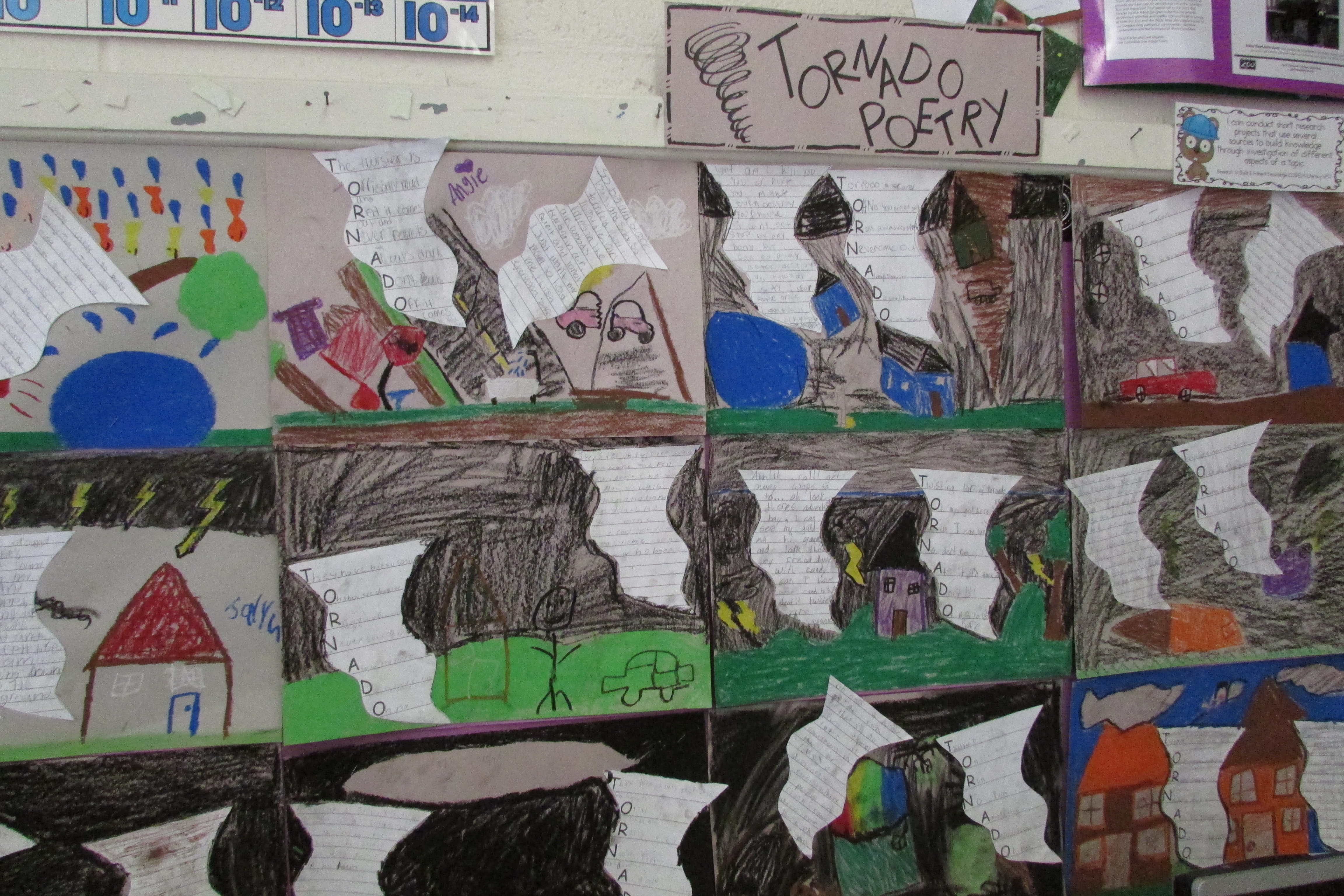 We are just starting the book, “Night of the Twisters”, by Ivy Ruckman. The kids are so excited to learn about tornadoes! We read some great non-fiction books about tornadoes and then we wrote different types of poems. I got the poetry layouts from here! We used oil pastels to make the background picture. I think they turned out GREAT!