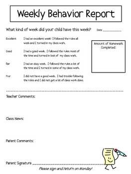 I also use Weekly Behavior Reports as a way to communicate with parents, about good behavior as well as behavior that may need to be corrected. This form also contains a place to record how much homework was turned in for the week. Parents just have to sign the form and students return them on Monday. If they turn the form in on time, they get a ticket which is entered into a weekly drawing for a trip to the treasure chest.