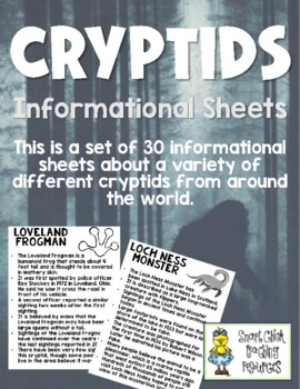 My kids absolutely love to learn about the different cryptids that may be living in our world! They are always so excited when we start this unit at the end of the year. We start with learning about different types of cryptids. These informational posters about cryptids are a great way to give students some background information. Click here to purchase the posters! They can also research them on-line.