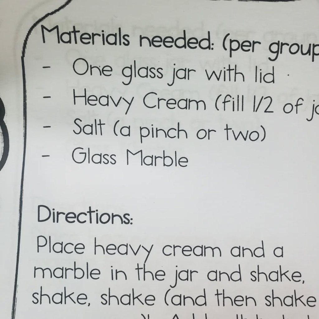 Our classroom is just beginning to start a unit on Matter in science! I usually try to start with a lab that really grabs their attention and making butter is a fun one! In this lab kids can see a liquid turn into a solid. They get so excited to see the changes that happen as they shake the jar.