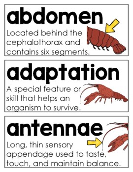 These are a great way to get kids to better understand the vocabulary related to crayfish. Buy these vocabulary words here.
