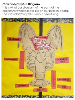 We also make a diagram of the crayfish and place the cards onto the diagram. Just trace the picture of the crayfish onto a sheet of bulletin board paper.