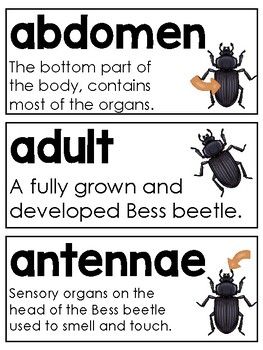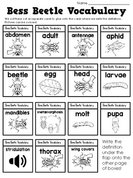 1. Bess Beetle Vocabulary – There are 15 vocabulary cards with definitions and pictures and an interactive notebook page for recording these definitions. There are two options for the front page.