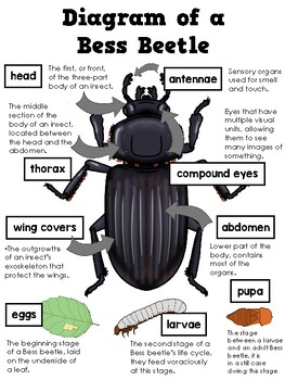 3. Diagram of a Bess Beetle – Fill in the diagram of a Bess beetle by cutting out the parts and gluing them into the correct locations on the Bess beetle. Add information about each part.