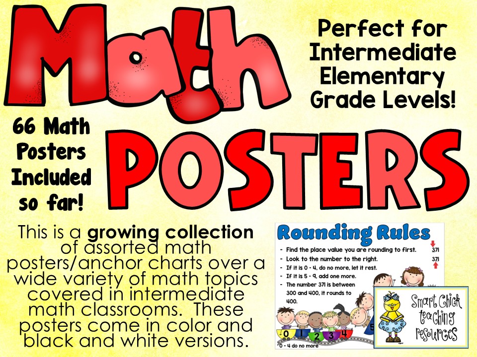 This is a growing bundle of math posters that can be used in an intermediate classroom. There are 66 included in the pack right now. I am working towards having 100+ posters in the pack by the end of this school year. Click here to check it out in my tpt store.